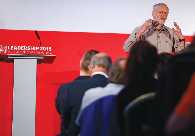 CANDIDATE JEREMY Corbyn speaks during a Labour Party leadership hustings event in Stevenage, Britain on June 20.. (photo credit:REUTERS)