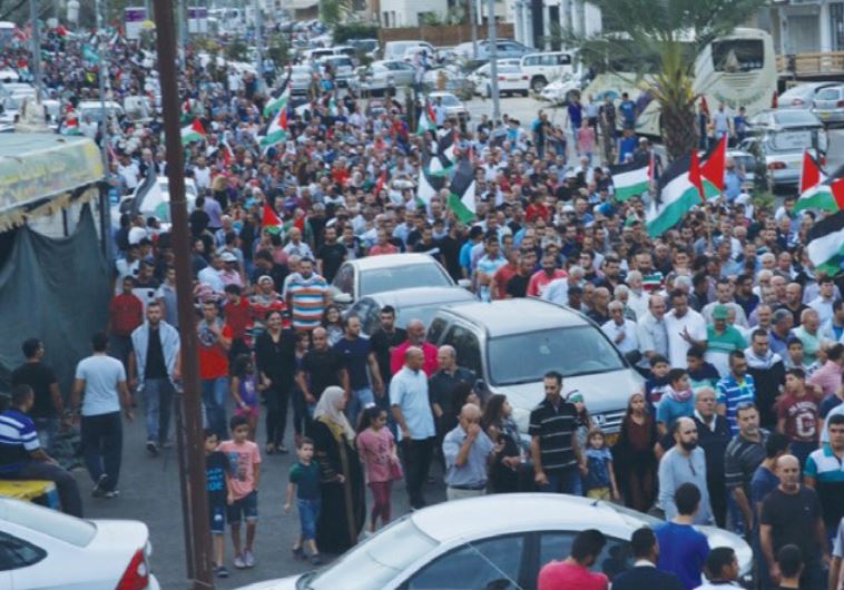 DEMONSTRATORS GATHER in Sakhnin, October 13, 2015. (photo credit:JOINT ARAB LIST)