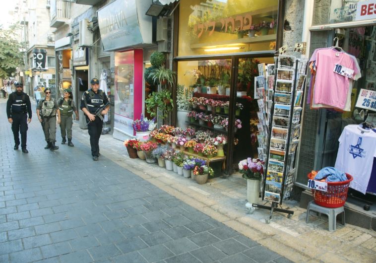 Walking down the normally bustling Ben-Yehuda Street, one finds the heart of Jerusalem uncannily empty (and security out in force). (photo credit:MARC ISRAEL SELLEM/THE