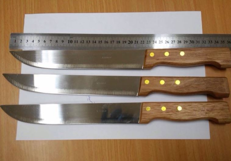 Officers find 23-centimeter-long butcher knives on the three Jenin residents.