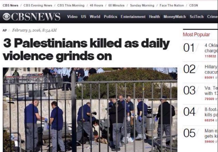 The anger stems from the perception that articles and headlines are written in a manner that inverts victims and perpetrators such as when CBS reported, “3 Palestinians killed as daily violence grinds on,” despite the fact that the three Palestinians had been killed while carrying out a terrorist attack. It was this headline that led to the flap between the government and the American network.