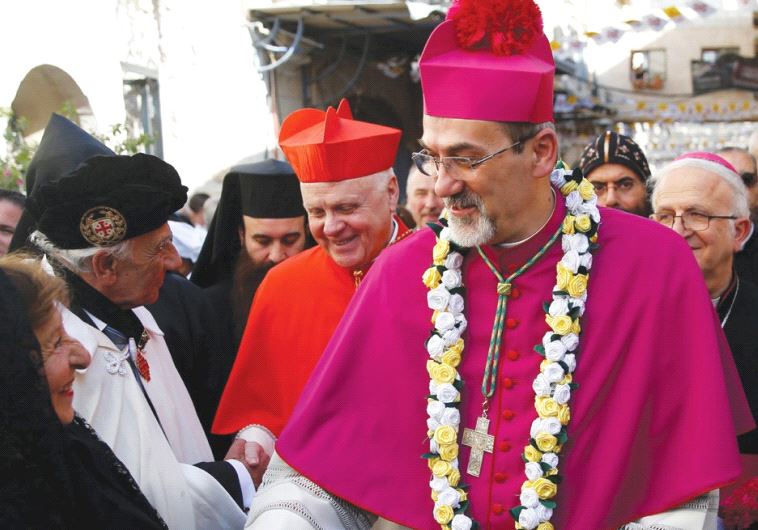 PIERBATTISTA PIZZABALLA shakes hands with a well-wisher in the Old City