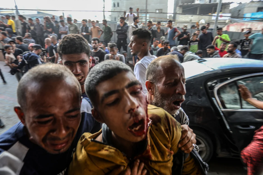 Nearby, at Nasser Medical Complex, hospital staff said that the entire ward was crowded with casualties. Video from the hospital showed dozens of people arriving with wounds, with others inside the hospital waiting for treatment as they laid on the floor.