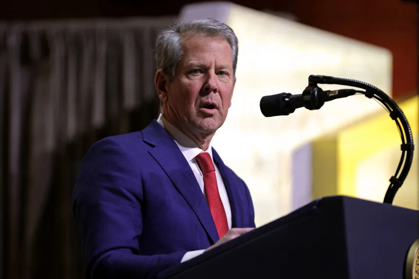 Brian Kemp, governor of Georgia, speaks during a meeting of the Republican Governors Association at the National Building Museum in Washington, DC, on February 20, 2025.