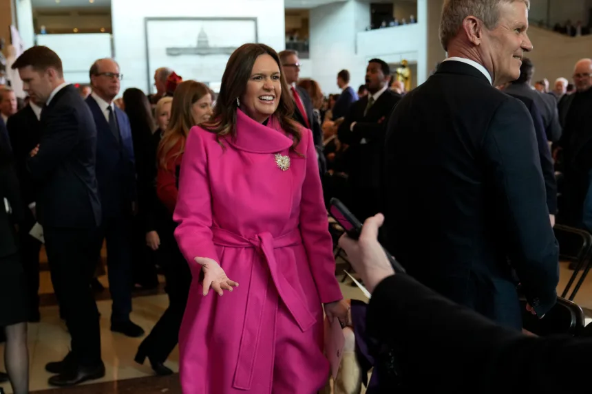 Arkansas Gov. Sarah Huckabee Sanders arrives prior to the inauguration of Donald Trump at the United States Capitol on January 20, 2025, in Washington, DC.
