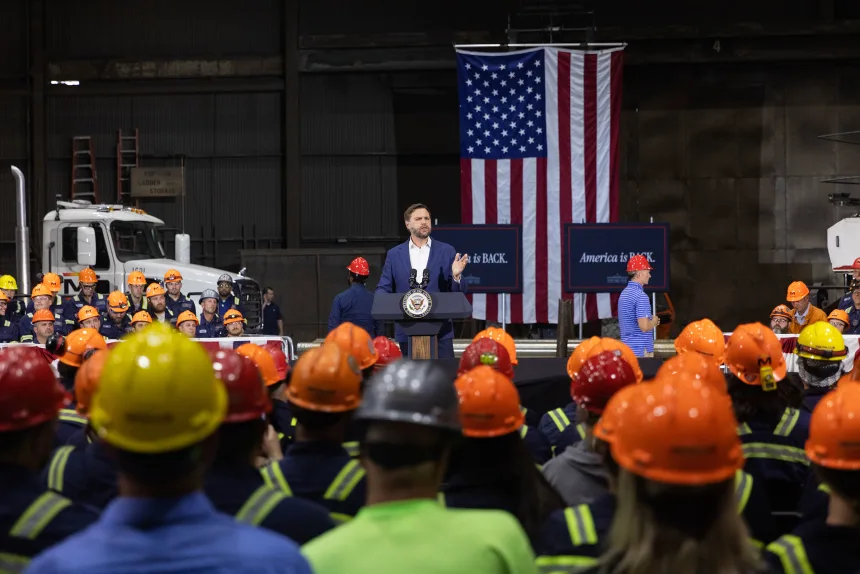 Vice President JD Vance speaks at Metallus, a metal products manufacturer, on July 28, 2025, in Canton, Ohio.