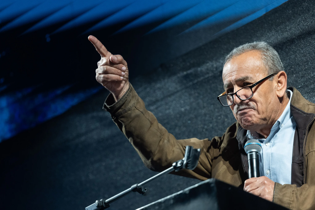 Speaking from onstage, Sakhnin’s mayor Mazen Ghnaim said that “we want personal security,” after 27 Arab citizens fell victim to homicide in the past month alone. Last year was the deadliest year on record for Arab society in Israel, with 252 killed in crime-related violence.